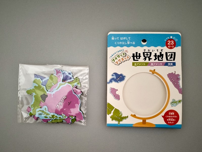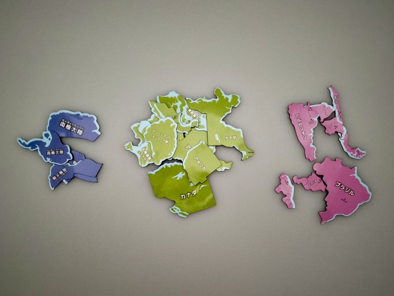 購入した3種類、全部の大陸ができあがっても省略されている国がけっこうあるので、世界地図の代わりってわけにはいかないけれど、どの大陸にどの国があるのか、大きさや大陸の中のどのあたりにあるのか知ったりできるのは大人でも十分勉強になった。