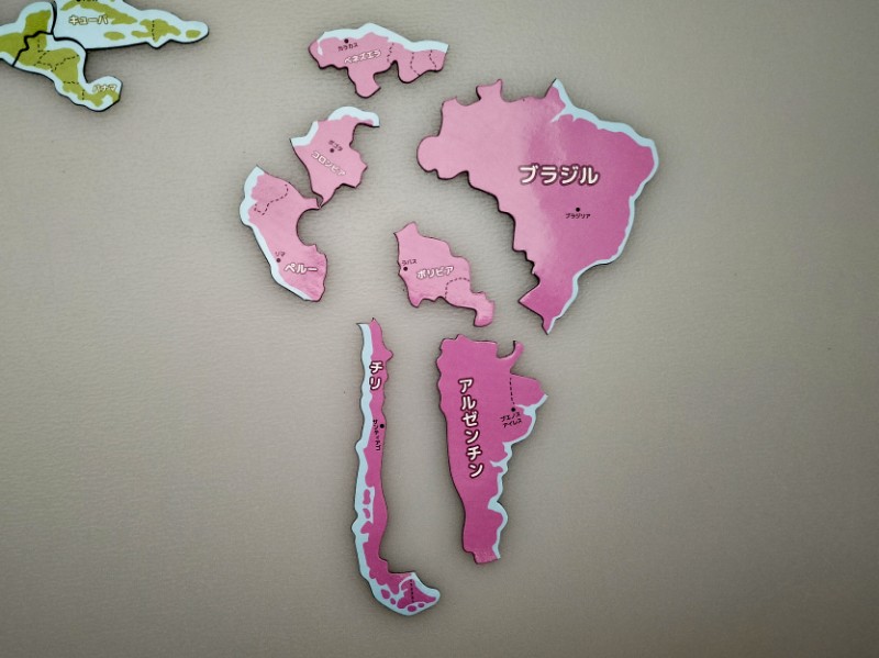 国ごとにピースがあるのかと思っていたけれど、南米はベネズエラ、コロンビア、ペルー、ブラジル、ボリビア、チリ、アルゼンチンと書いてある7ピース…あれ?