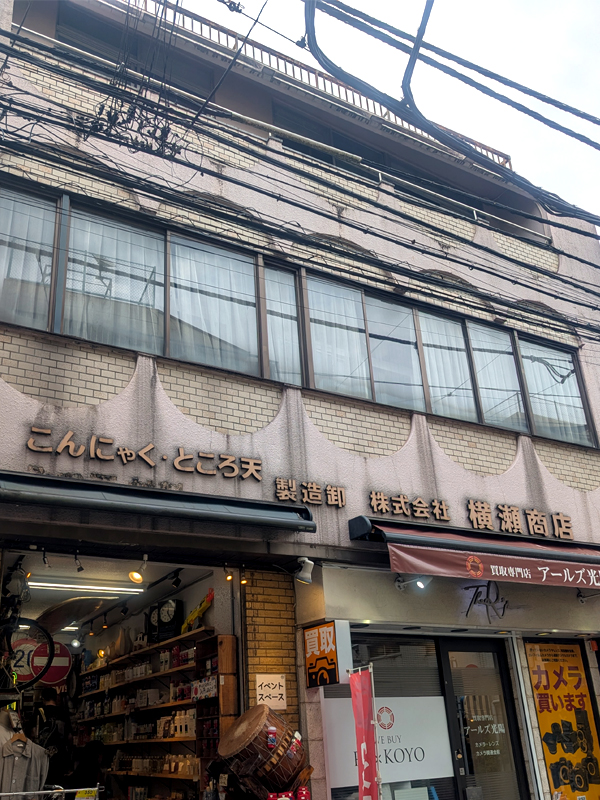 3つ目、『アールズ光陽』&『VIC Goods イベントスペース』。こんにゃく・ところ天製造卸の看板が残ったままなのがいい。窓の周りを半円で飾るのもレトロ。