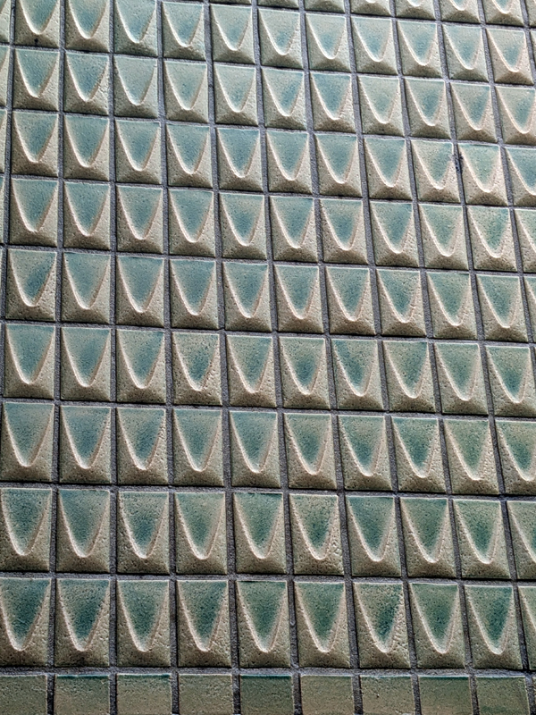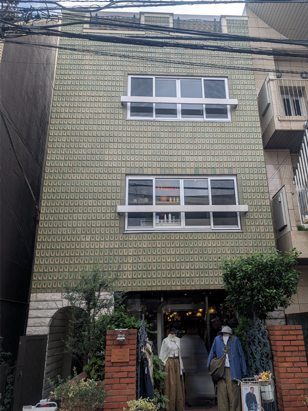 この鱗のようなタイルが外壁を彩る。うーん、レトロでいい。