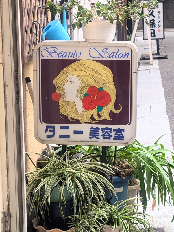 このイラストにビューティーサロンの文字。さらに『タニー美容室』のレトロな書体。