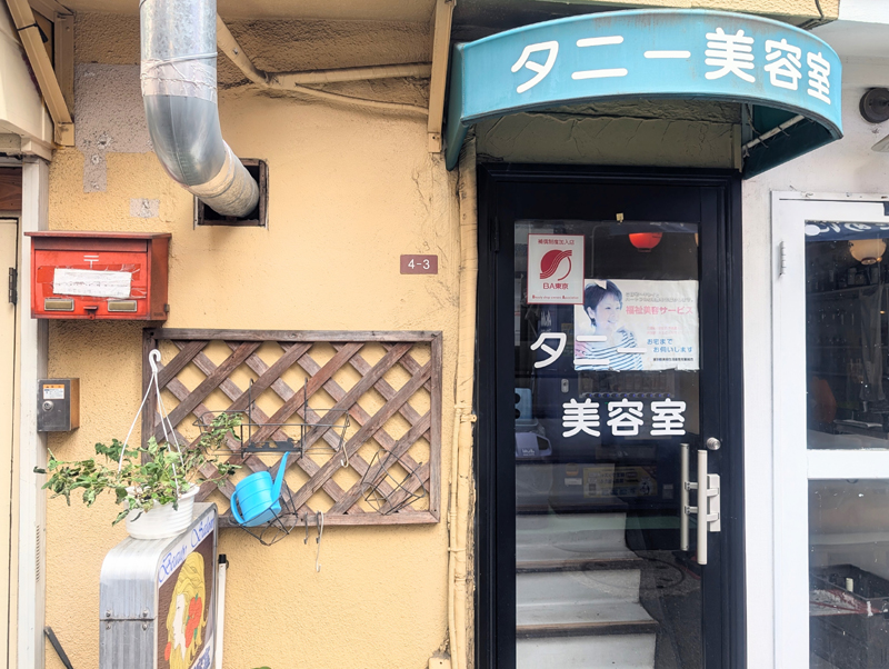 商店街の中を行くと見えてくる『タニー美容室』の看板。
