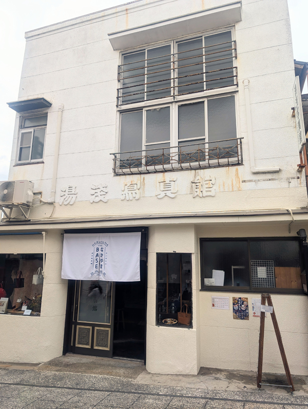 3つ目、同じく商店会にある『旧 湯浅写真館』。現在は『なかやまBASE』としてイベントスペースになっている。白い看板建築の建物に旧字の“写真”がよりレトロさを際立てる。