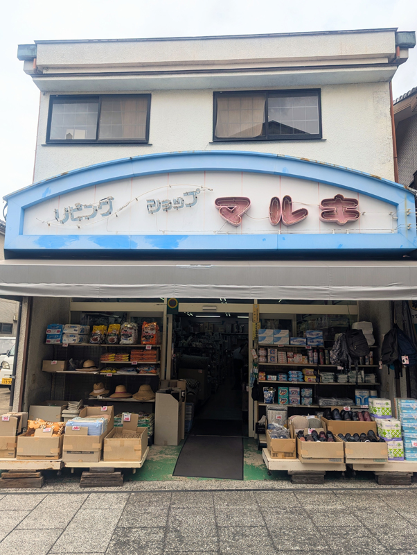 4つ目、『マルキ商店』。いわゆる“荒物屋”さん。リビングショップマルキと書いてある看板が、80年代にあったファンシーショップみたいでたまらない。