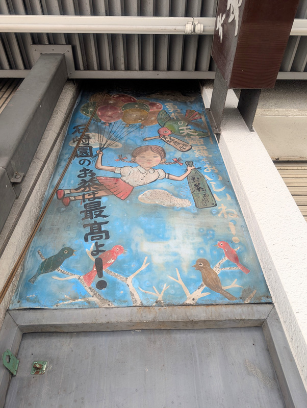 1つ目は『石崎園』と『天ぷら勇作』。その間にある看板がレトロでいい。