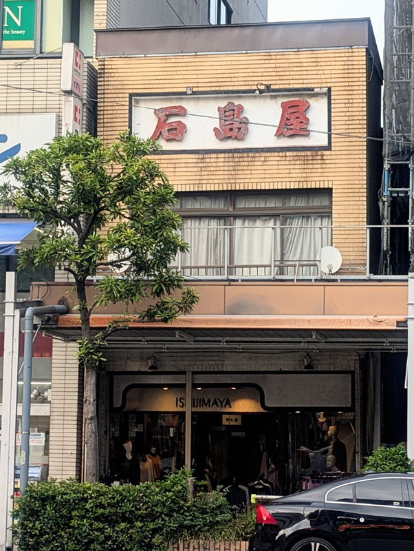 7つ目は『石島屋』。反対側の道から見ると看板のレトロさが分かる。