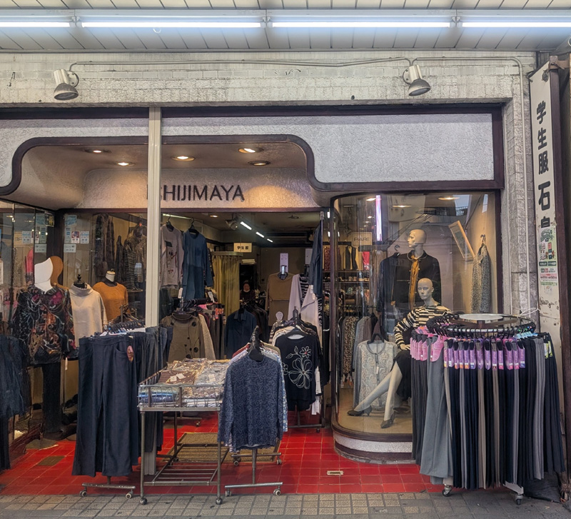 お店の前に行くと看板は見えないが、マネキンの入っている円柱ショーウィンドウがレトロでいい。